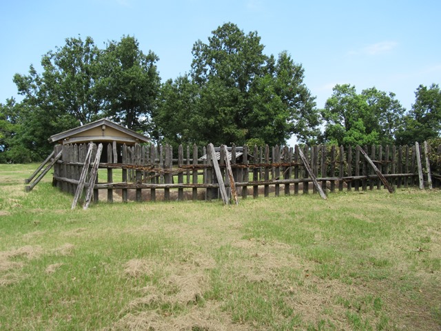 山頂部に柵と門と東屋が設けられ、近世より前の城を再現してありました。