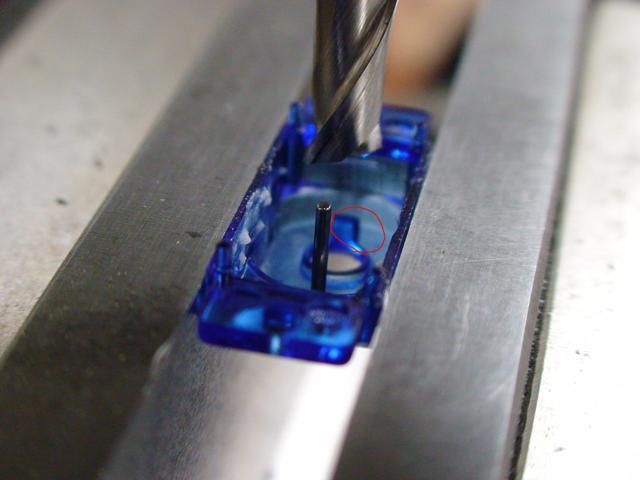 ケース側。赤いところが回り止めなのでこれを除去。今回はフライスに載せましたが、うまくやれば手加工でもできるはず。