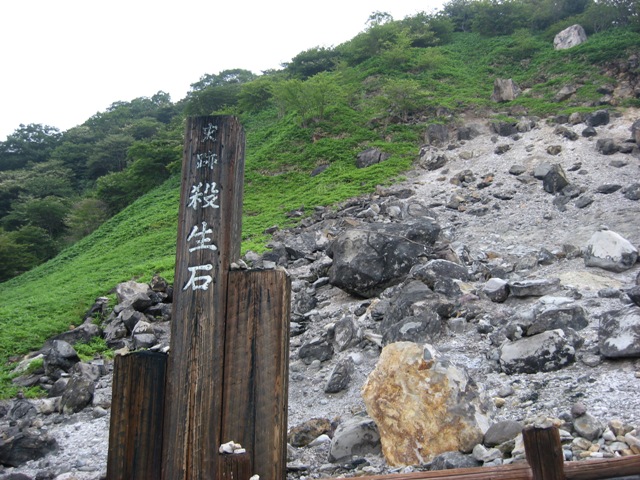 そうして到着、写真は殺生石。これが今回モチーフになっていただく九尾の狐さんを今に伝える石なのですね。